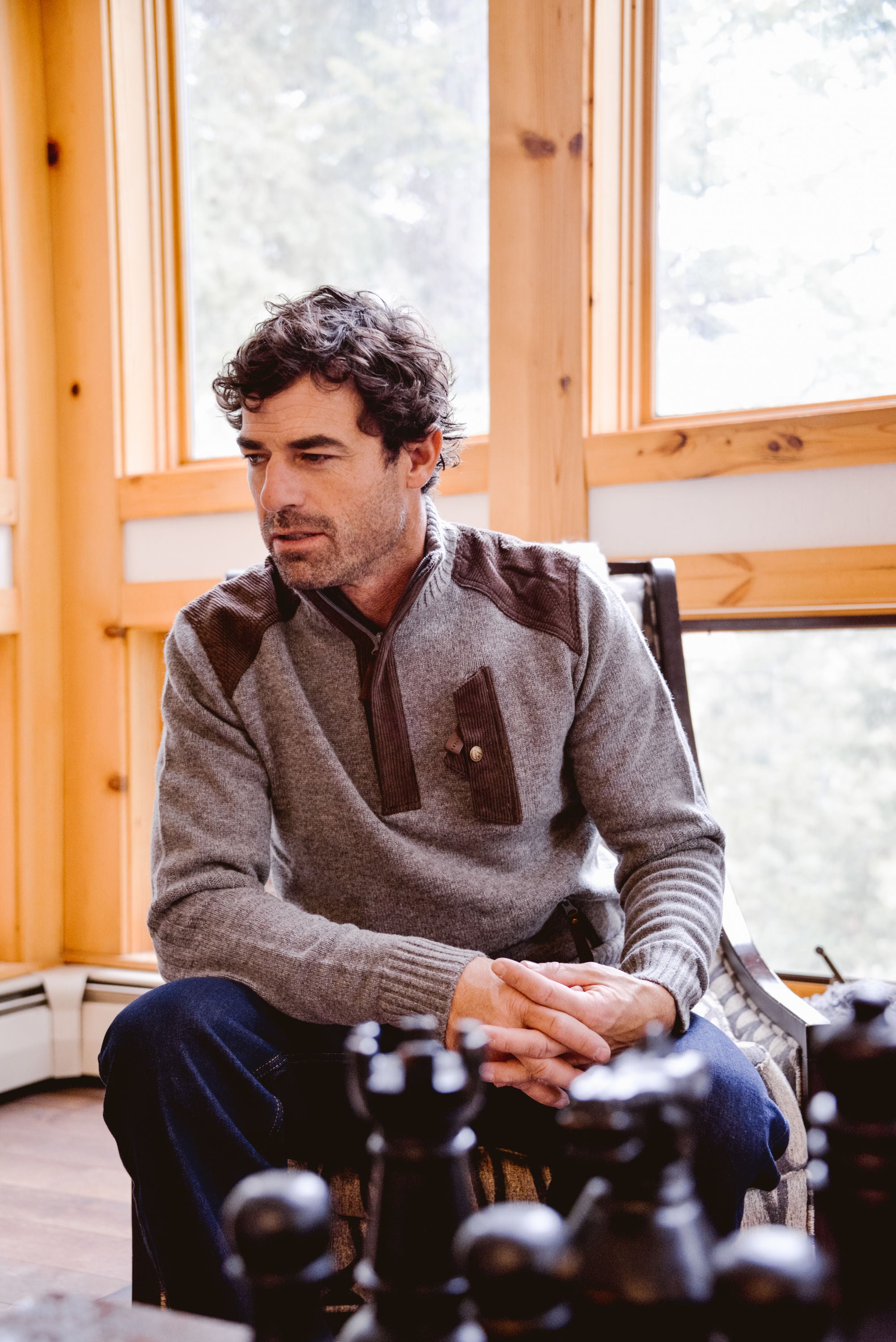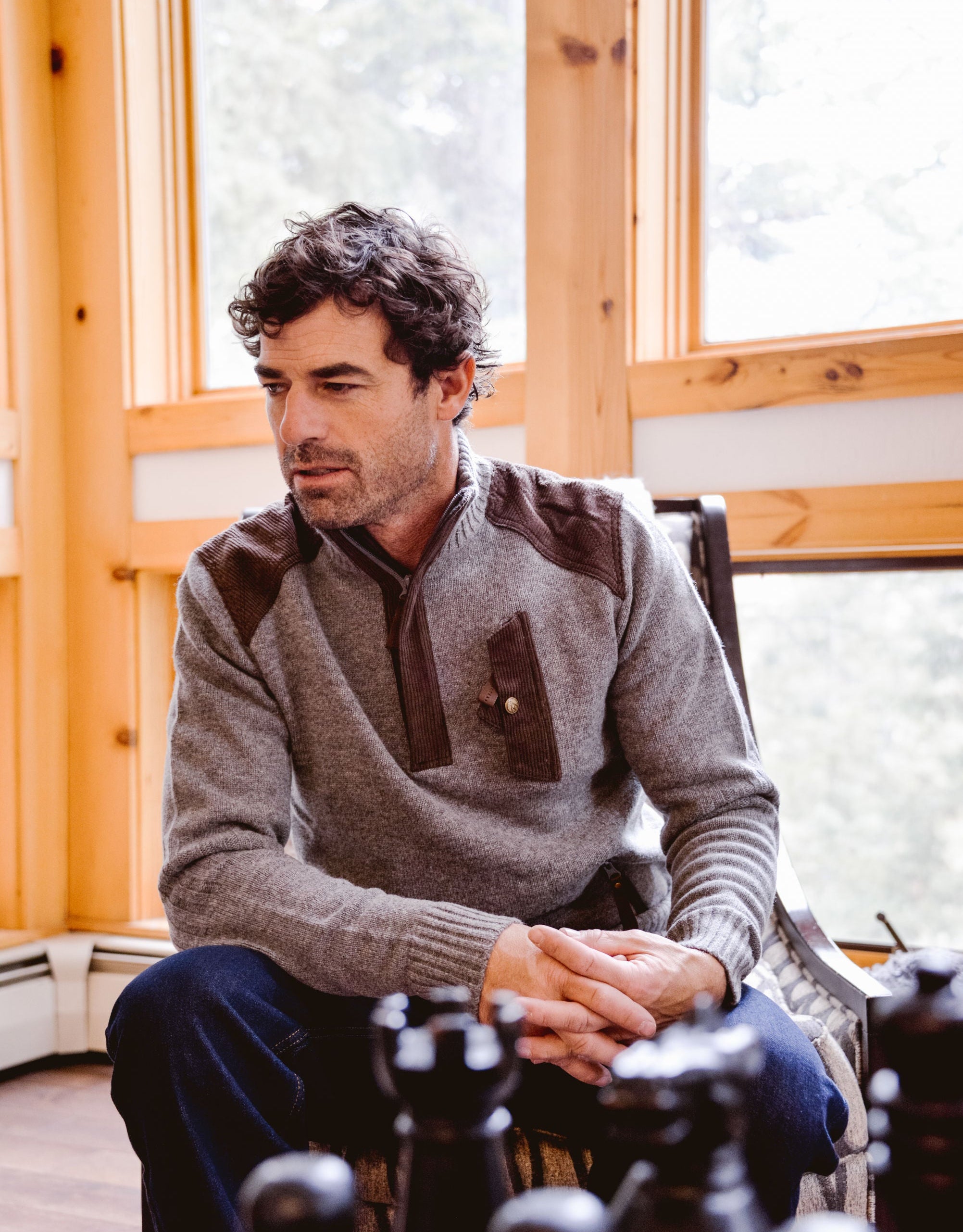 The signature ski sweater has been reimagined with merino and corduroy to create a version that celebrates the origins of American skiing in the High West.