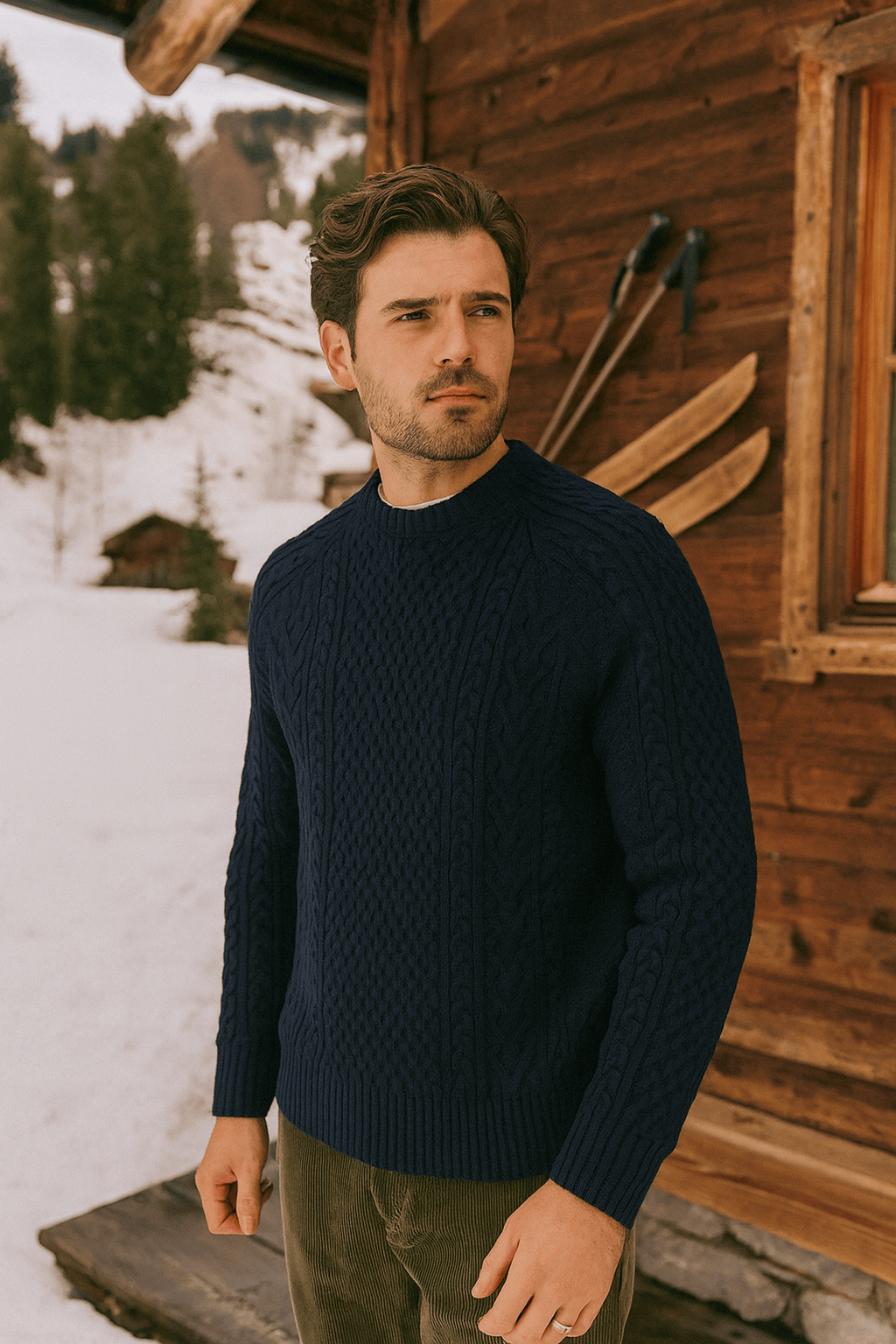 Informed by mid-century American skiing aesthetics, this signature feature stands as the garment’s hallmark—shielding the neck from cold drafts while delivering traditional sophistication on and off the mountain.