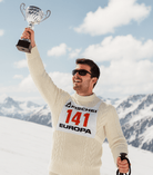 The Champions Cable Knit Sweater celebrates American skiing’s first champions of alpine sport —from the Dartmouth men who raced on Mount Moosilauke, to the victorious squads of the 1950s who carried U.S. colors onto the world stage. For these athletes, the cable knit was a talisman: warm, durable, and unmistakably classic. It represented the nation’s emerging alpine identity, forged in New England’s icy forests and the high-altitude snowfields of the West. Knit from 100% Italian merino fibers and engineered with an alpine-ready fit, the garment delivers familiar warmth with enhanced mobility, weather protection, and reliability in cold mountain environments. Each braided panel is a tribute to the original construction techniques that made the cable knit a skier’s essential, while USA manufacturing ensure long lasting wear on and off the hill.
