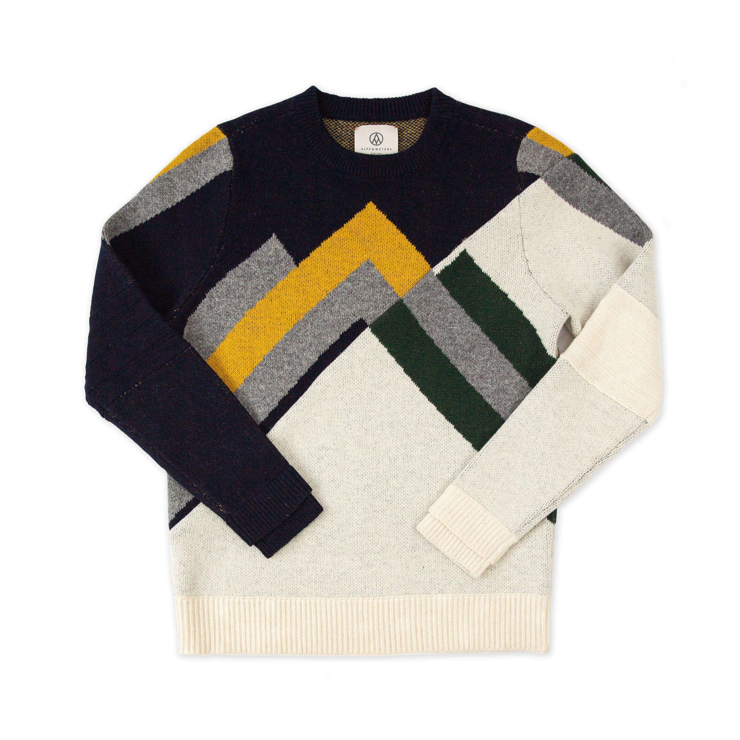 Like the brash and eclectic personalities of skiing’s earliest champions, Alps & Meters Mountain Memories knitwear delivers a bold upcycled unification of R&D sweater fragments that embody the spirit of alpine sport’s earliest and most passionate competitors.