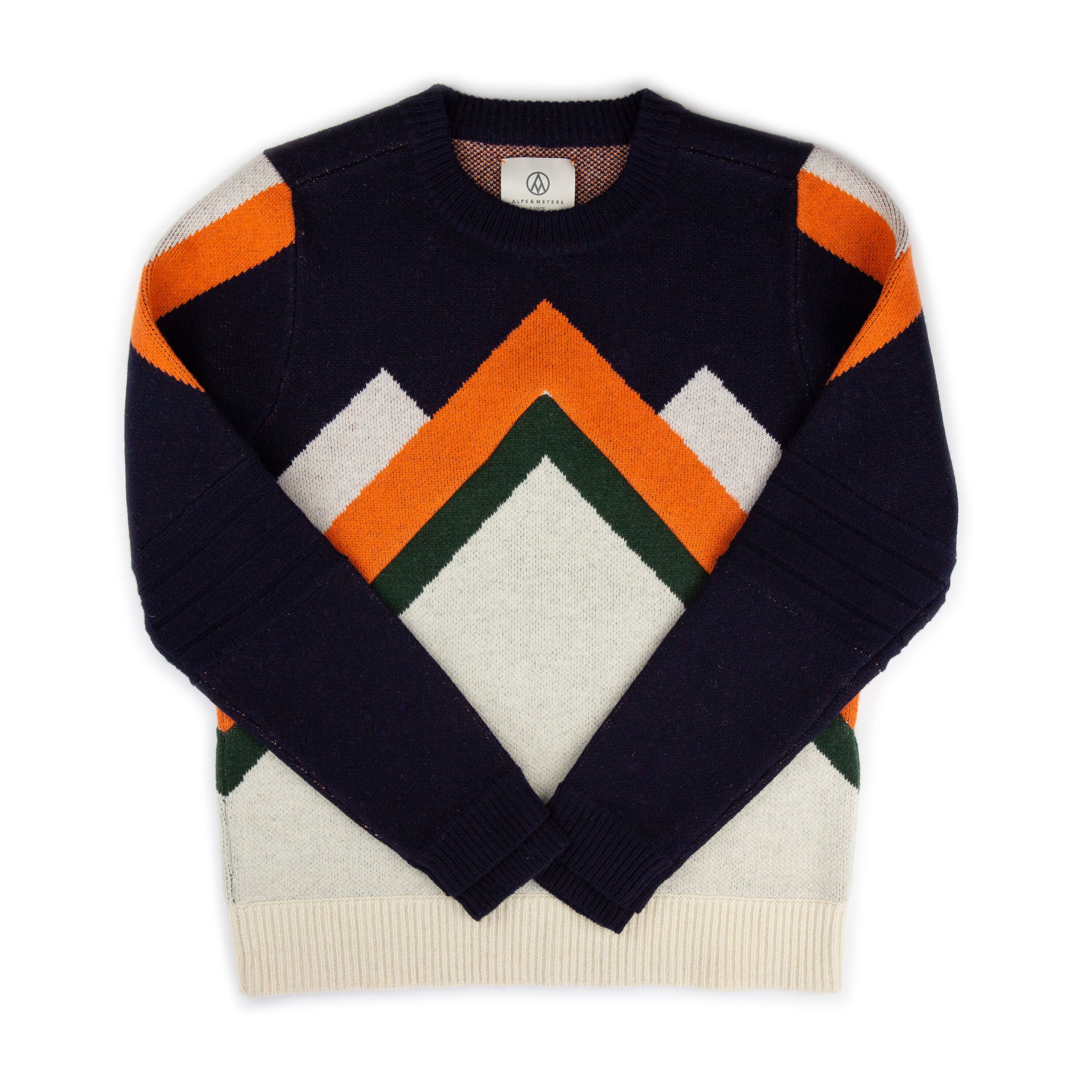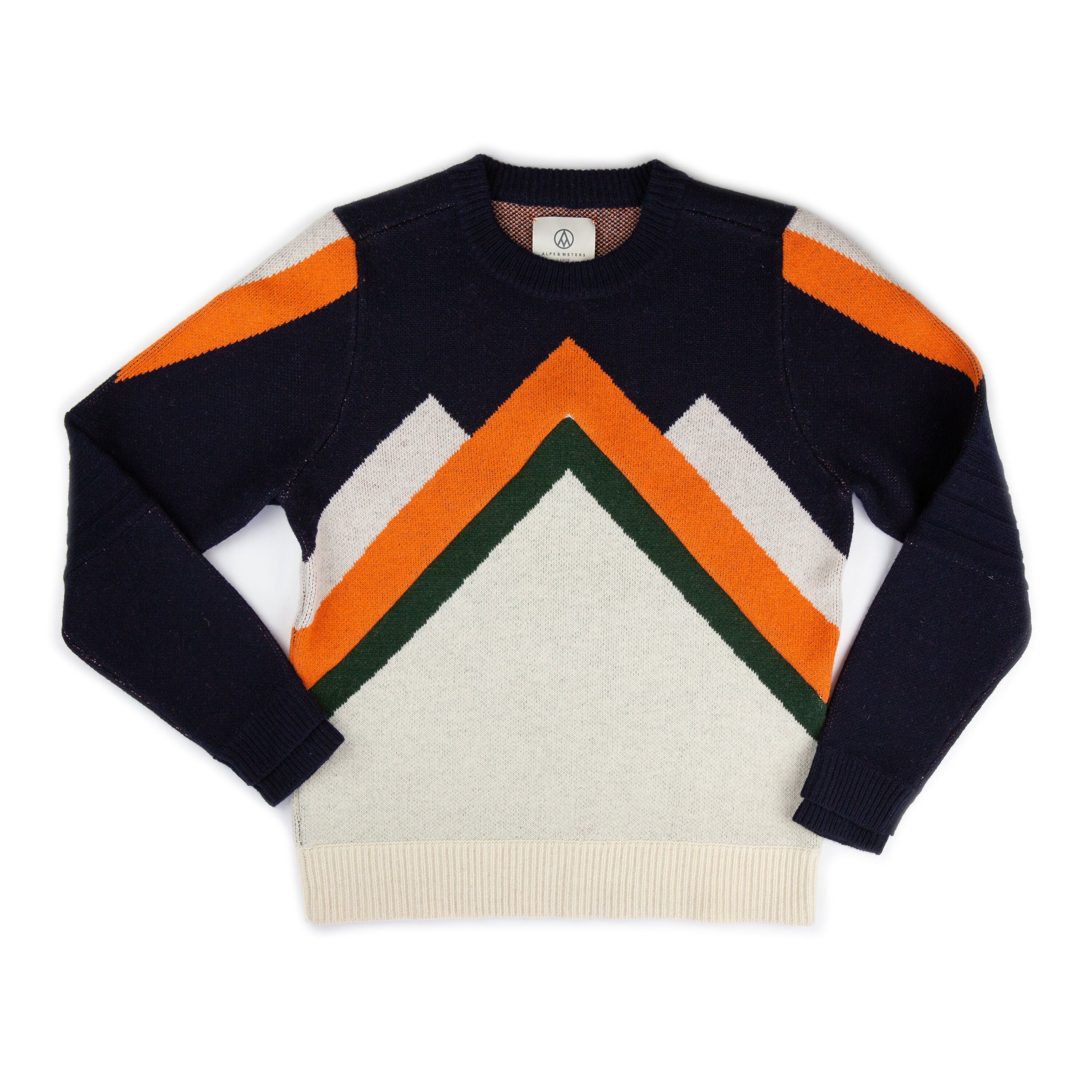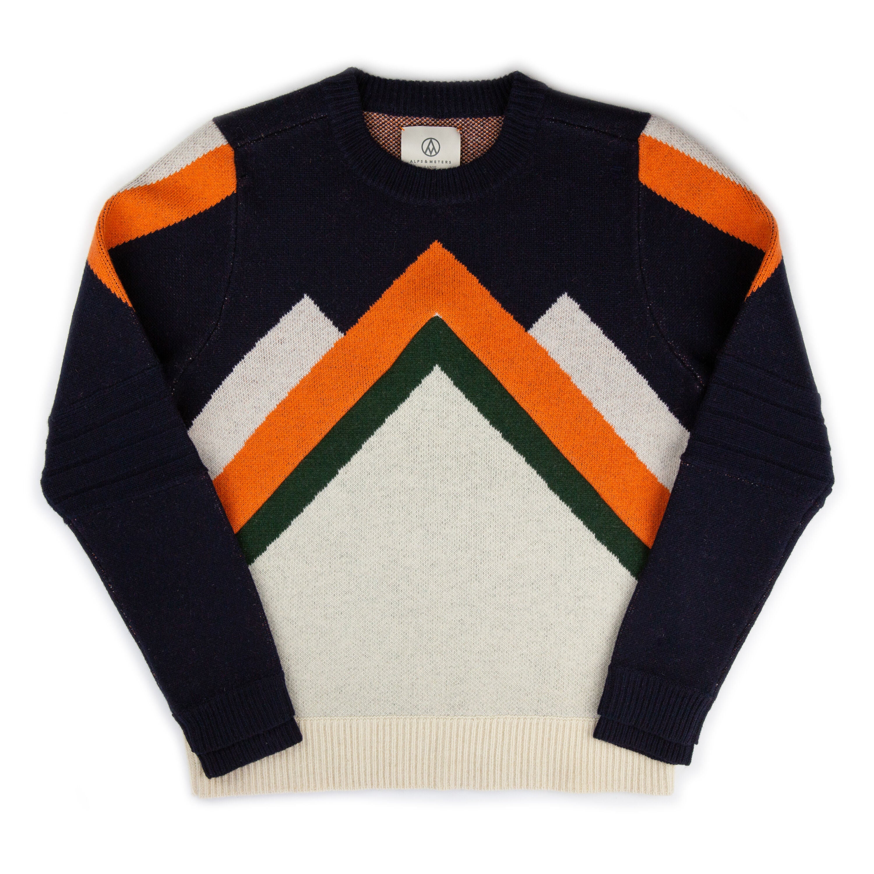Like the brash and eclectic personalities of skiing’s earliest champions, Alps & Meters Mountain Memories knitwear delivers a bold upcycled unification of R&D sweater fragments that embody the spirit of alpine sport’s earliest and most passionate competitors.