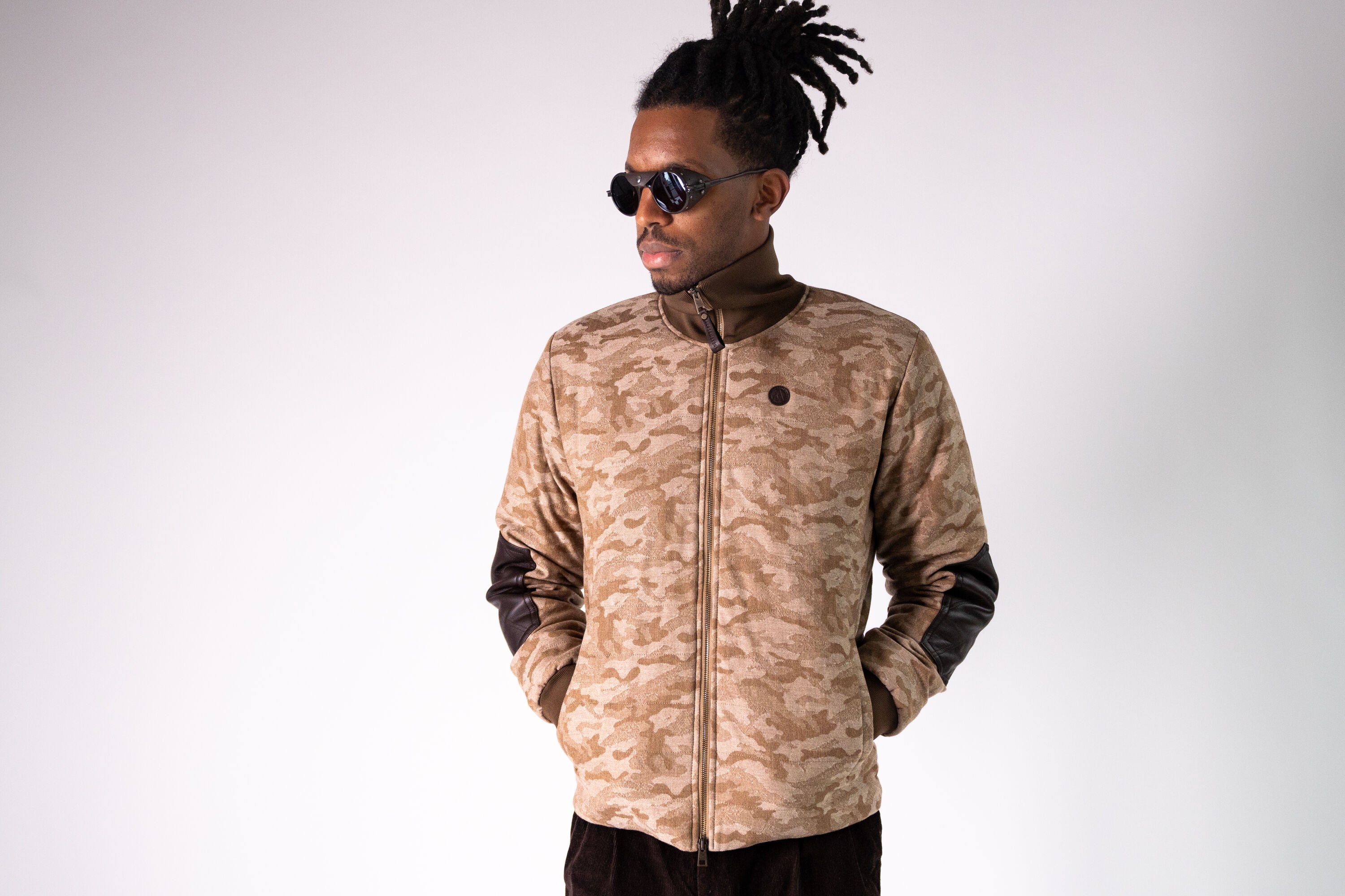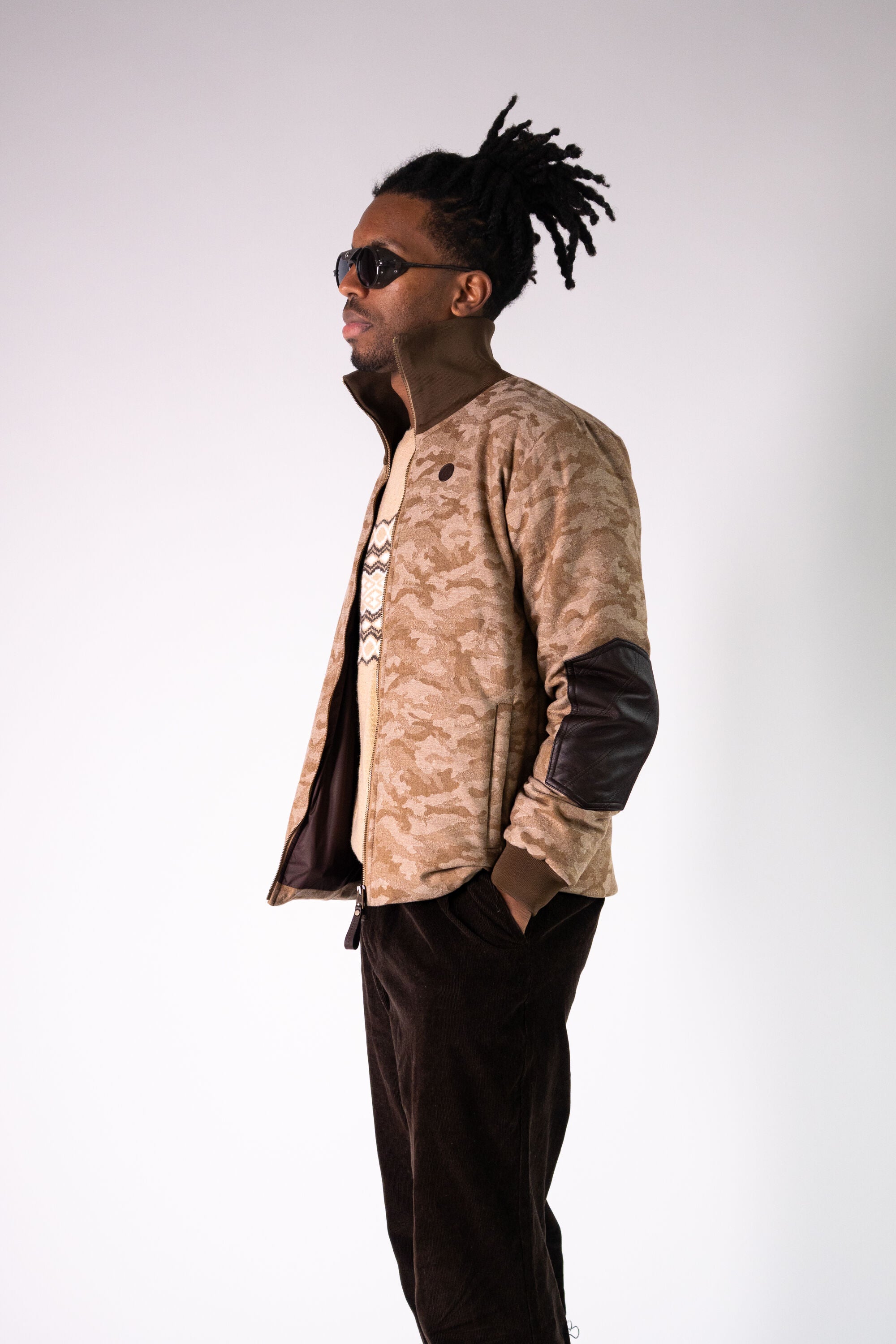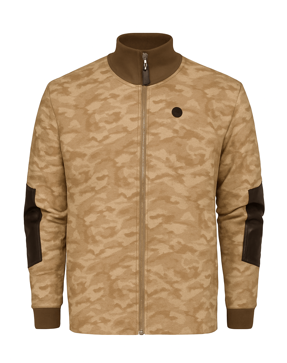 Channeling the British roots of Sir Alfred Lunn and his alpine sports club’s gentlemanly cache, Alps & Meters introduces the Schithorn Jacket Italiana II. Named after the peak from which the famed Inferno race begins, this all-season coverall commands Italian craftsmanship, a richly baffled Loro Piana luxury wool face fabric, and beautiful suede overlays exuding a high taste mixed medium of natural fabrics. Designed with a sophisticated Desert camouflage expression this evergreen outerwear garment is ideal for the Gentleman Sportsman with high taste alpine sporting sensibilities and an appreciation of timeless & traditional methods of making.