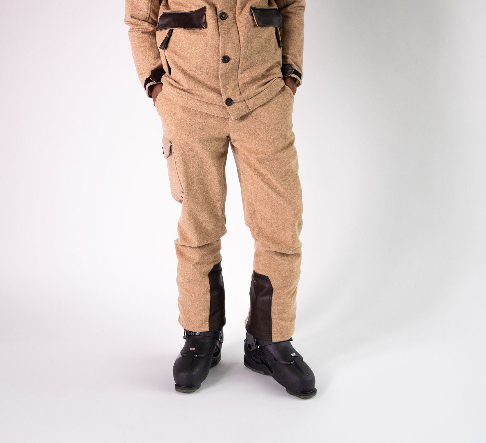 Made in Italy in collaboration with the famed Loro Piana mill and including a unique mix of protective technologies, the Alpine Winter Trouser Italiana II represents a powerful combination of both the past and present. Fabricated with Loro Piana's protective Green Storm System fibers and expressed in a sophisticated Desert hue, this luxury pant with vintage suspender kit is ideal for chic alpine settings and high street mountain village wear occasions.