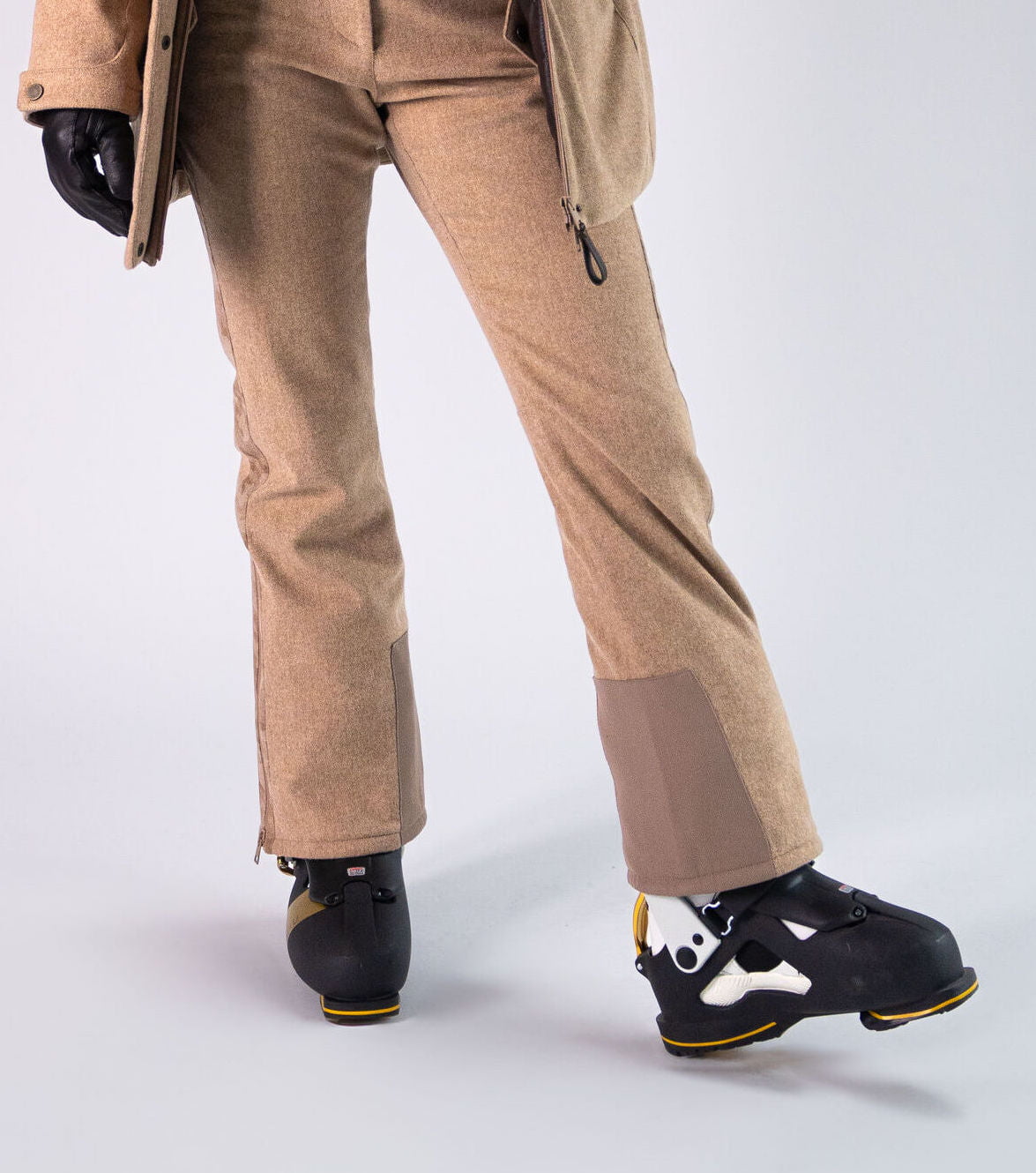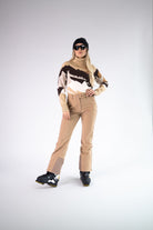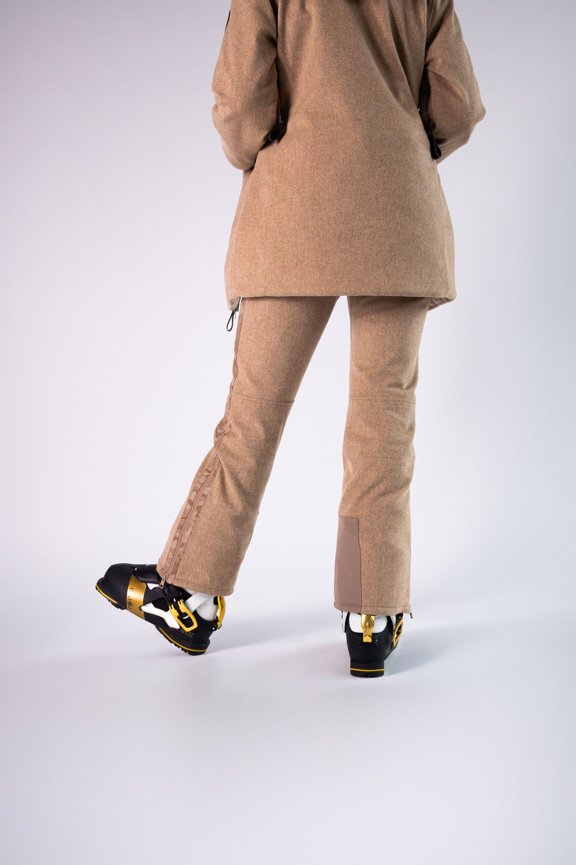 It is in recognition and appreciation of such tailored sportswear garment innovation that Alps & Meters has designed the Twenties Trouser Italiana II. Made in Italy with a unique mix of a unique mix of protective technologies, this luxury ski pant represents a powerful combination of both the past and present. Elegant yet bold, the Twenties Trouser is built wit luxurious Loro Piana's Green Storm System woolen fiber in Desert hues offering windproof and waterproof protection for the tasteful alpine sportswoman seeking the first class comfort of traditional styling and refined Italian craftsmanship.