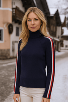 Classic sleeve racing stripes inspired by the first female downhillers.