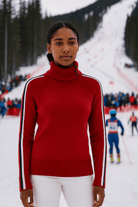 Made in the USA with a point of origin related to proper winter sweaters worn by America’s pioneering female skiers, the Women’s Ski Race Knit Downhill is a traditional piece of mountain-wear with form fitting characteristics. Combining softly blended cashmere and merino yarns, this luxurious sweater commands a first class expression representing the pure romance of ski racing.