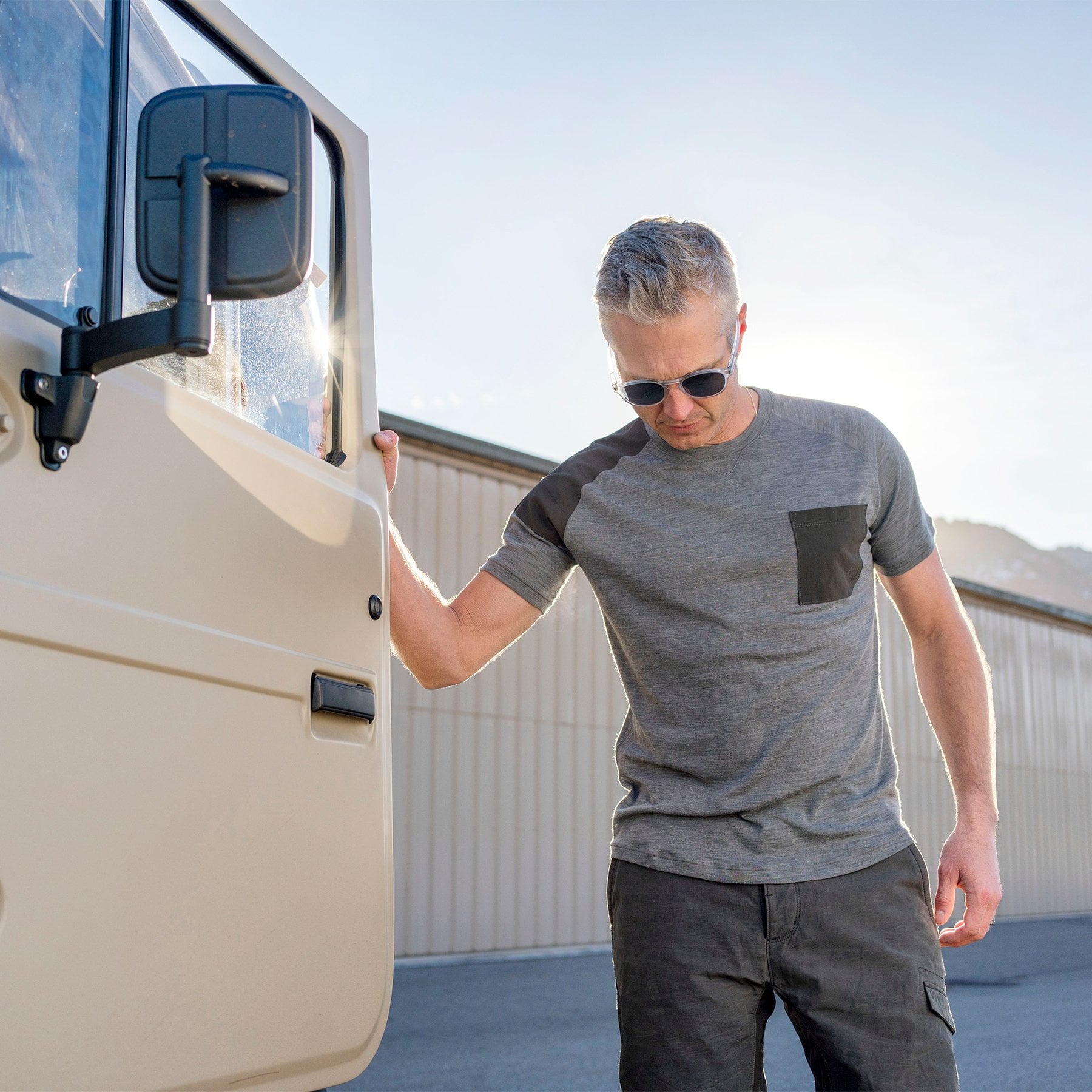 Featuring four-way stretch panels at the shoulder and a moisture wicking, odor-repellent merino body, this lightweight tee is well equipped to act as a four-season base layer.