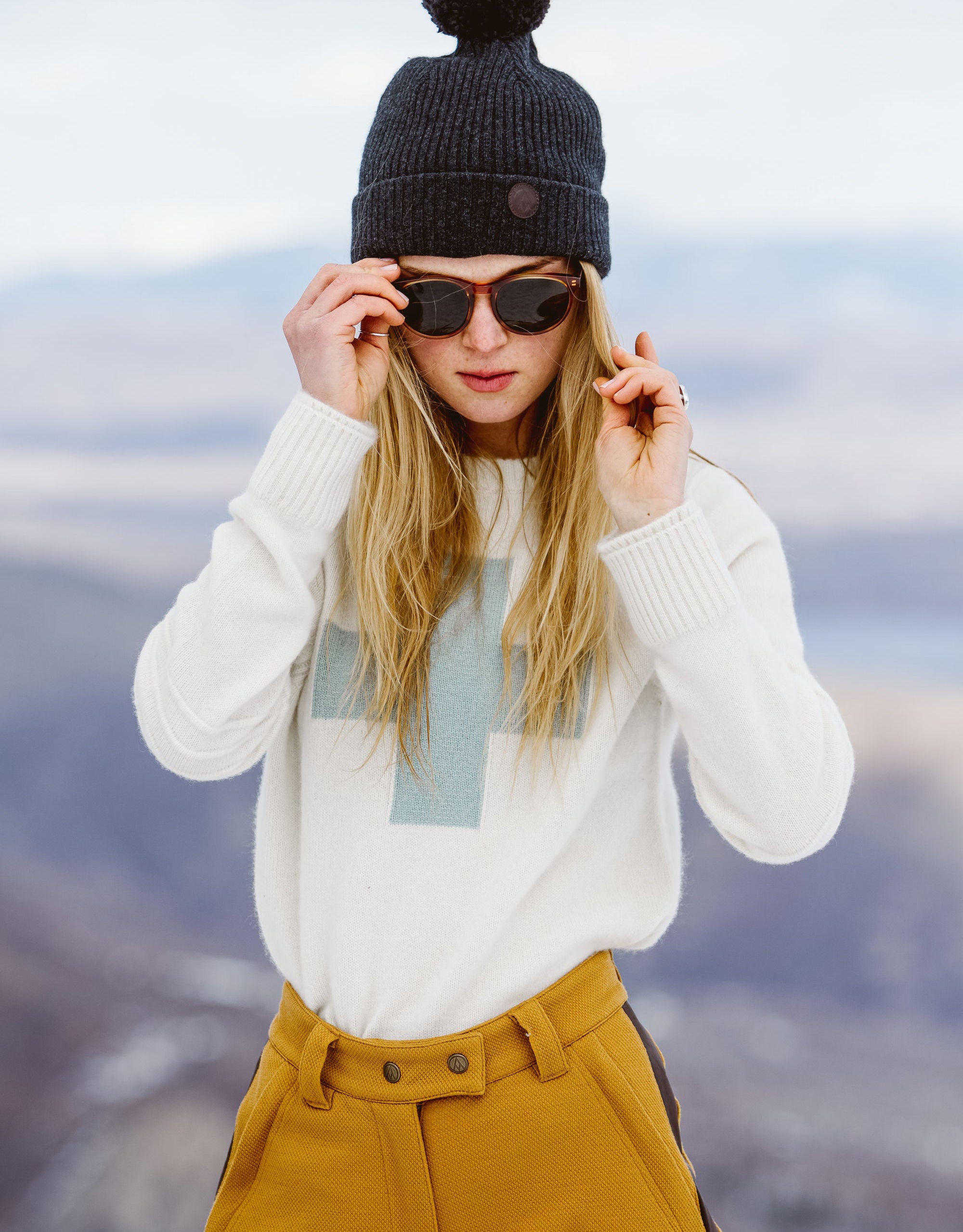 To honor of female ski patrollers, Alps & Meters has designed the Cashmere Ski Race Knit Patrol. Crafted of 100% Italian cashmere yarns and displaying the iconic uniform patrol cross, this nostalgic ski sweater is cut in classic crewneck silhouette with rich ribbing details throughout making the garment an ideal companion to the female alpinist on or off-piste.